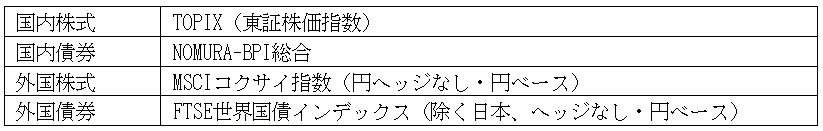 ※1 資産ごとにつぎの指数を基本資産配分で合成したものを参考指数とします。