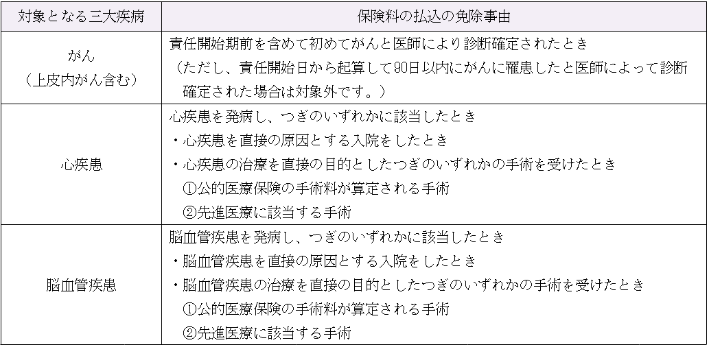 変額用保険料免除特約を付加した場合、第1保険期間(保険料払込期間)中に三大疾病により所定の事由に該当したとき、以後の保険料の払込が免除されます。保険料払込免除事由該当後も、引き続き保険料の払い込みがあったものとして、保障や特別勘定による運用を継続することができます。