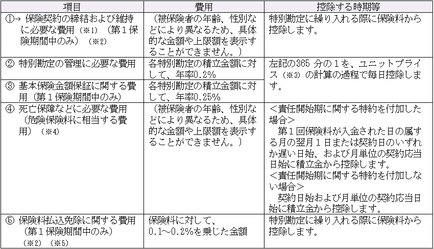 保険関係費用とは、お払い込みいただいた保険料もしくは積立金から控除される諸費用です。