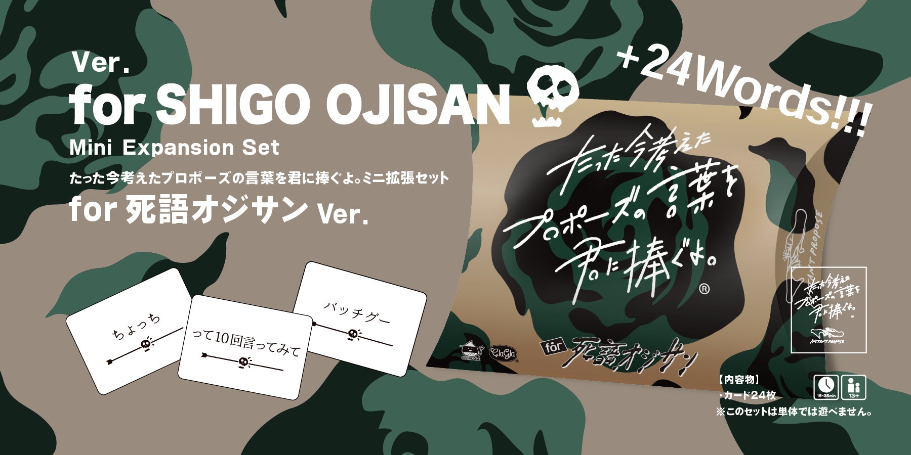 シリーズ累計25万部『たった今考えたプロポーズの言葉を君に捧ぐよ。』に新ミニ拡張『死語オジサン』、一人称変更セット『私とあなた』発売!