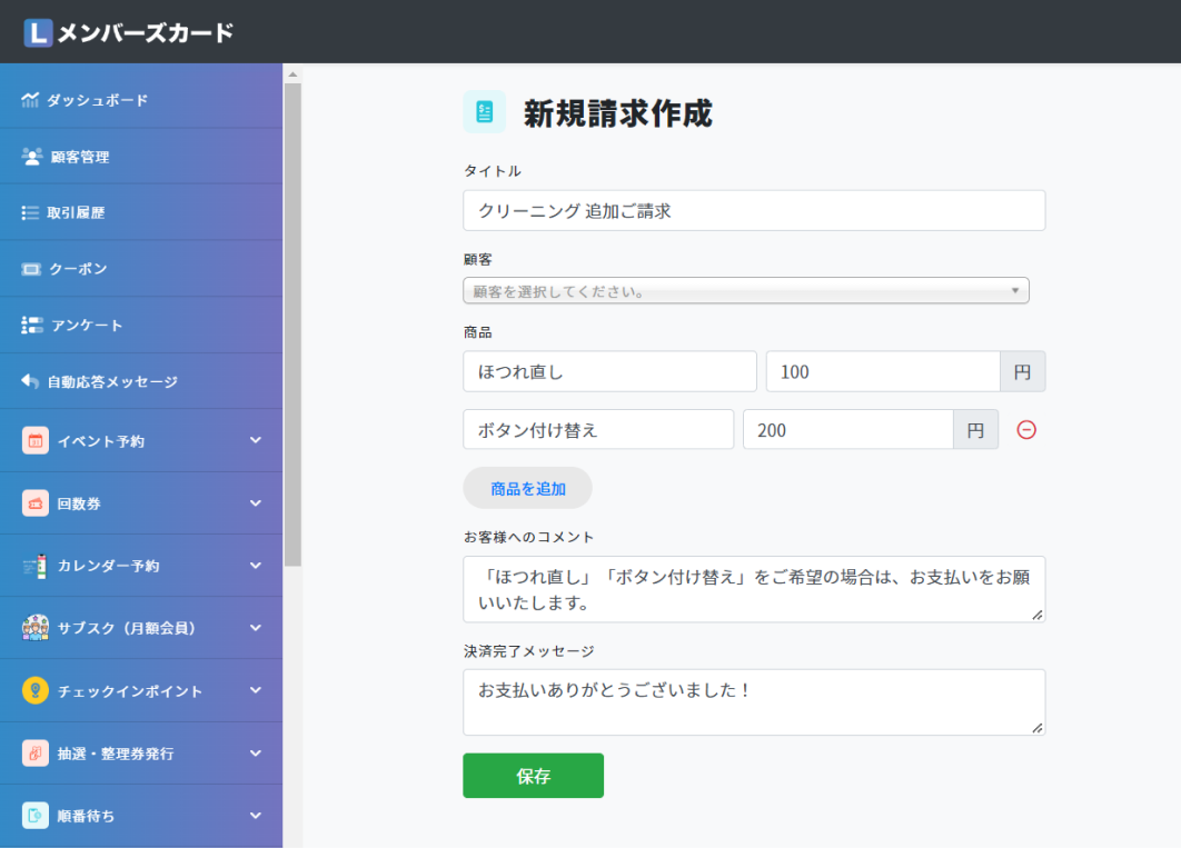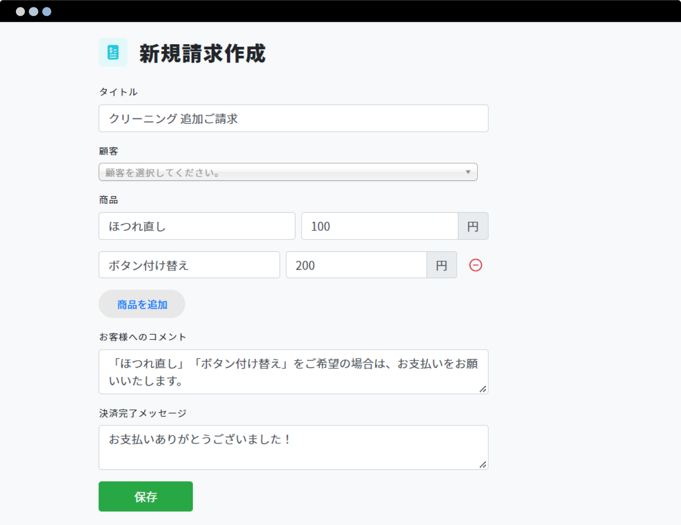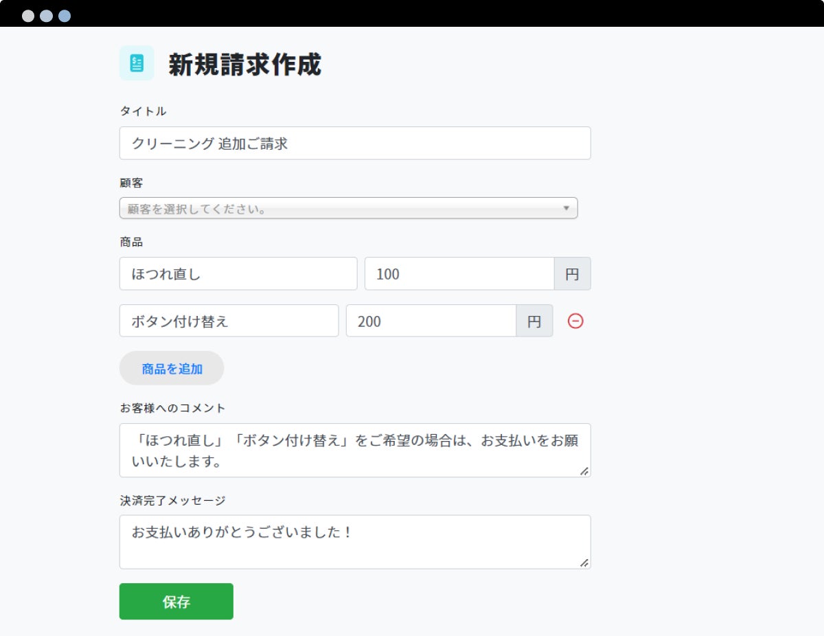 - クイック請求機能の利用例:クリーニング店のオプション対応