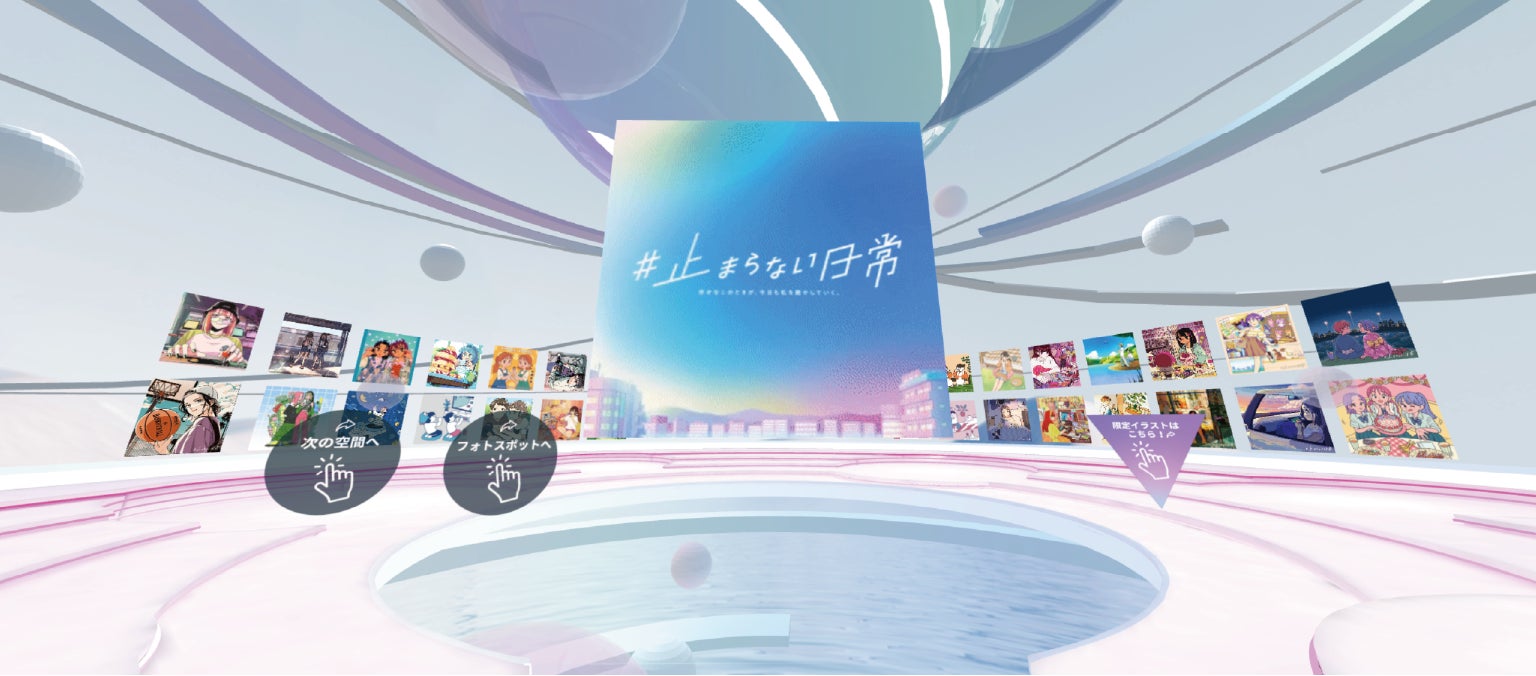1. 上記のイベントURLから「#⽌まらない⽇常メタバース」に⼊室し、ギャラリーをご覧ください。