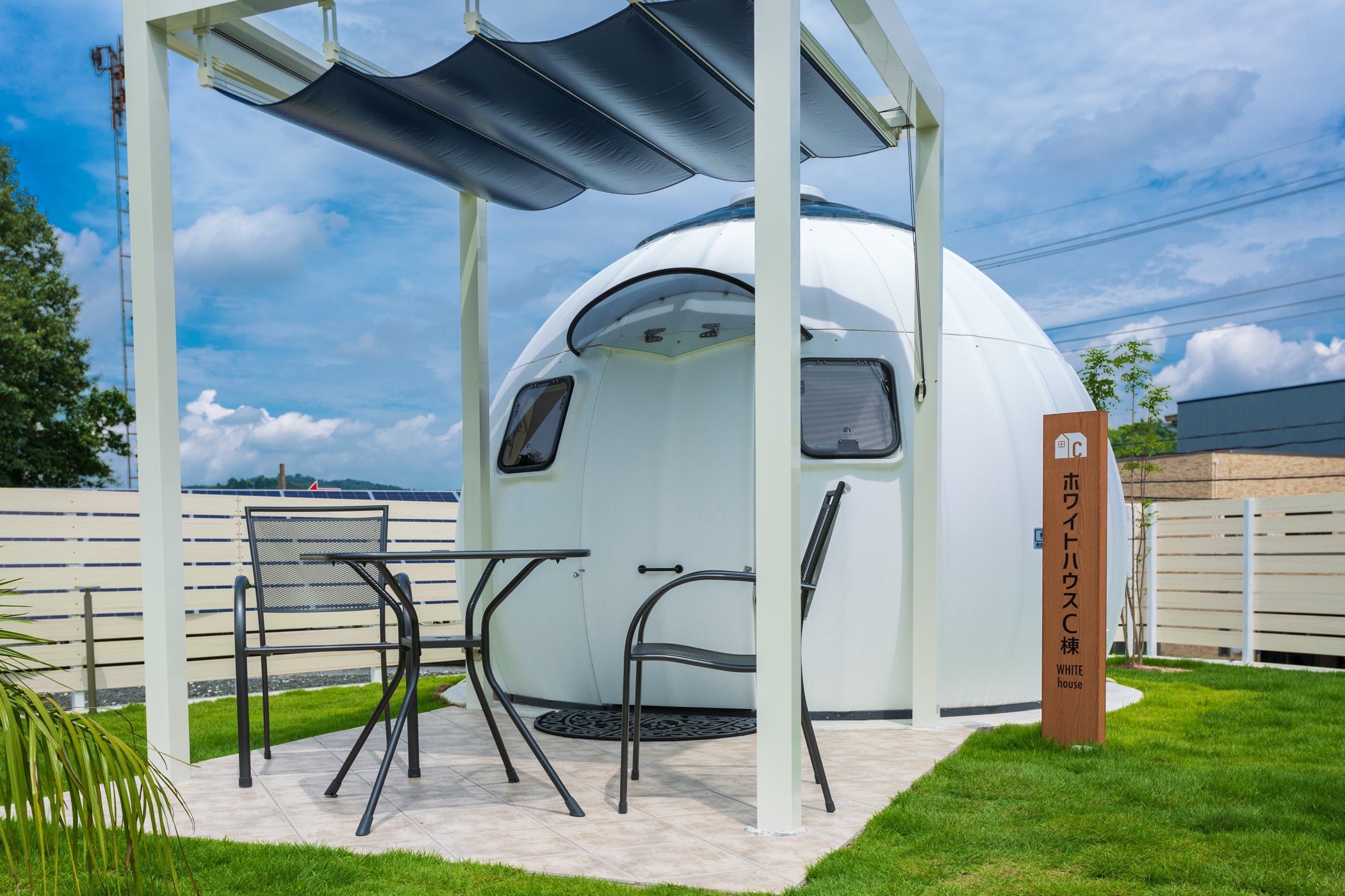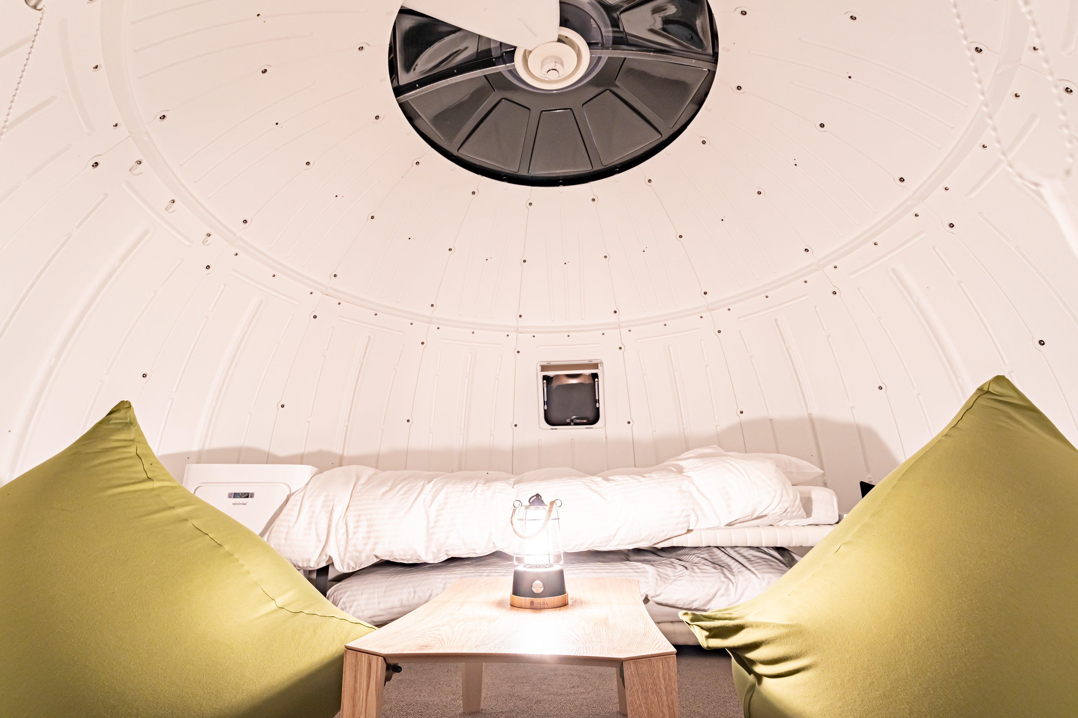 フューチャーリゾートでは選べる4種類のお部屋をご用意。プライベートプールや温泉を備えた高級ヴィラやジャグジー風呂付きのドーム型テント、ユニークなウッドキャビンやまるで宇宙船のようなホワイトハウスからお好みのグランピングステイをお選び頂けます。各棟独立型となり、共有スペースはほぼ屋外なので、密を避け安心してお過ごし頂けます。