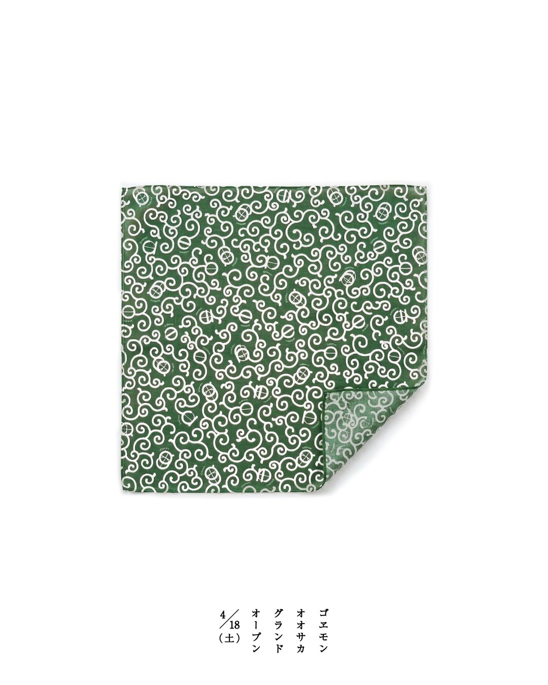 モチーフは、泥棒の象徴としても知られる「唐草模様」。その文様の中に「goyemon」のアルファベットを散りばめた、オリジナル柄を採用。