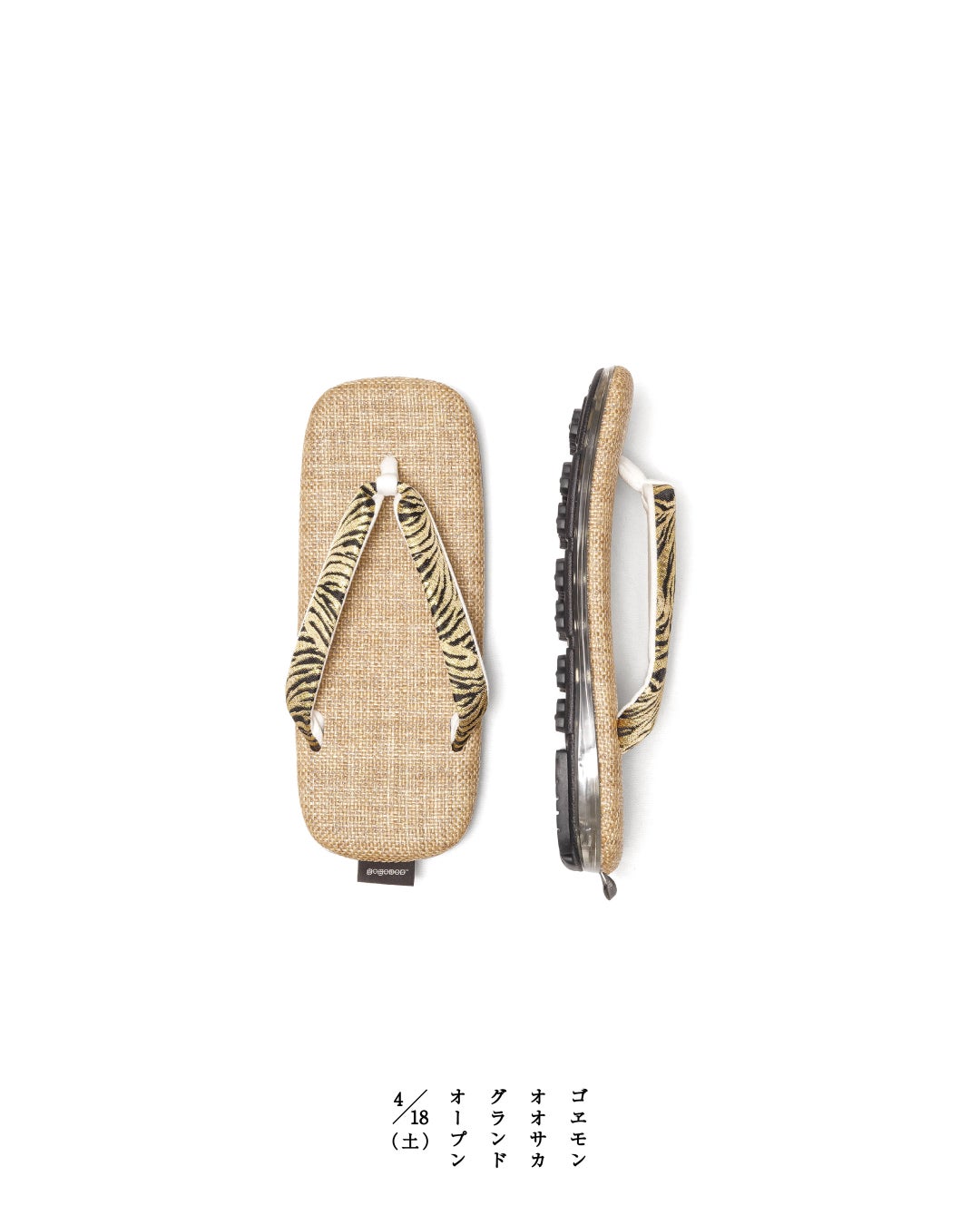 ソールには薄型のHOVERソールを搭載し、雪駄らしい佇まいを残しながら、虎柄の表情をより際立たせた一足。