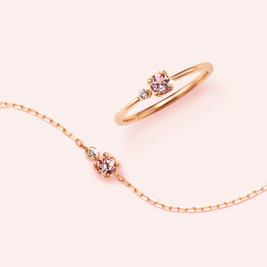 シャンパンガーネット×ダイヤモンド K10/K18ピンキーリング・リゼッテ ¥48,400〜¥78,100(税込)