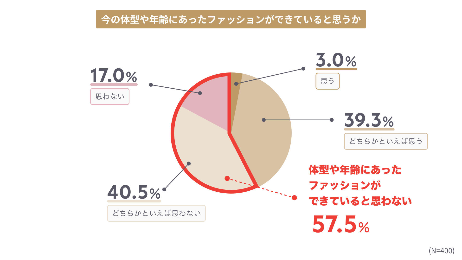 - 今の自分に適しているファッションができていないと感じる人は6割近く