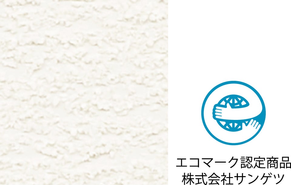 同見本帳では、環境配慮型の壁紙「MEGUReWALL(メグリウォール)」シリーズを新たに収録。車両内装に使われるクッション材の端材などを再利⽤したリサイクル樹脂の壁紙は、環境保全に役立つ商品としてエコマーク認定を取得しました。また、稲を脱穀した際に出る「もみ殻」を再利用した壁紙も収録。両商品は裏打ち紙にも再生紙を使用しており、環境負荷の低減に貢献します。