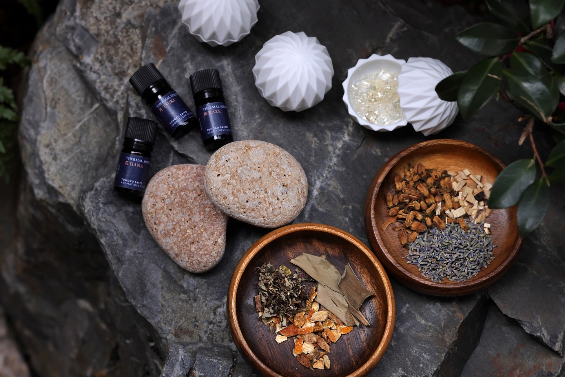 施術前には、新潟県糸魚川市産の天然ラジウム鉱石「姫川薬石」を使用したフットバスリチュアルを行います。石の持つ温浴効果とともに、お好きな香りの精油を加え、心身をリラックスへと導きます。
