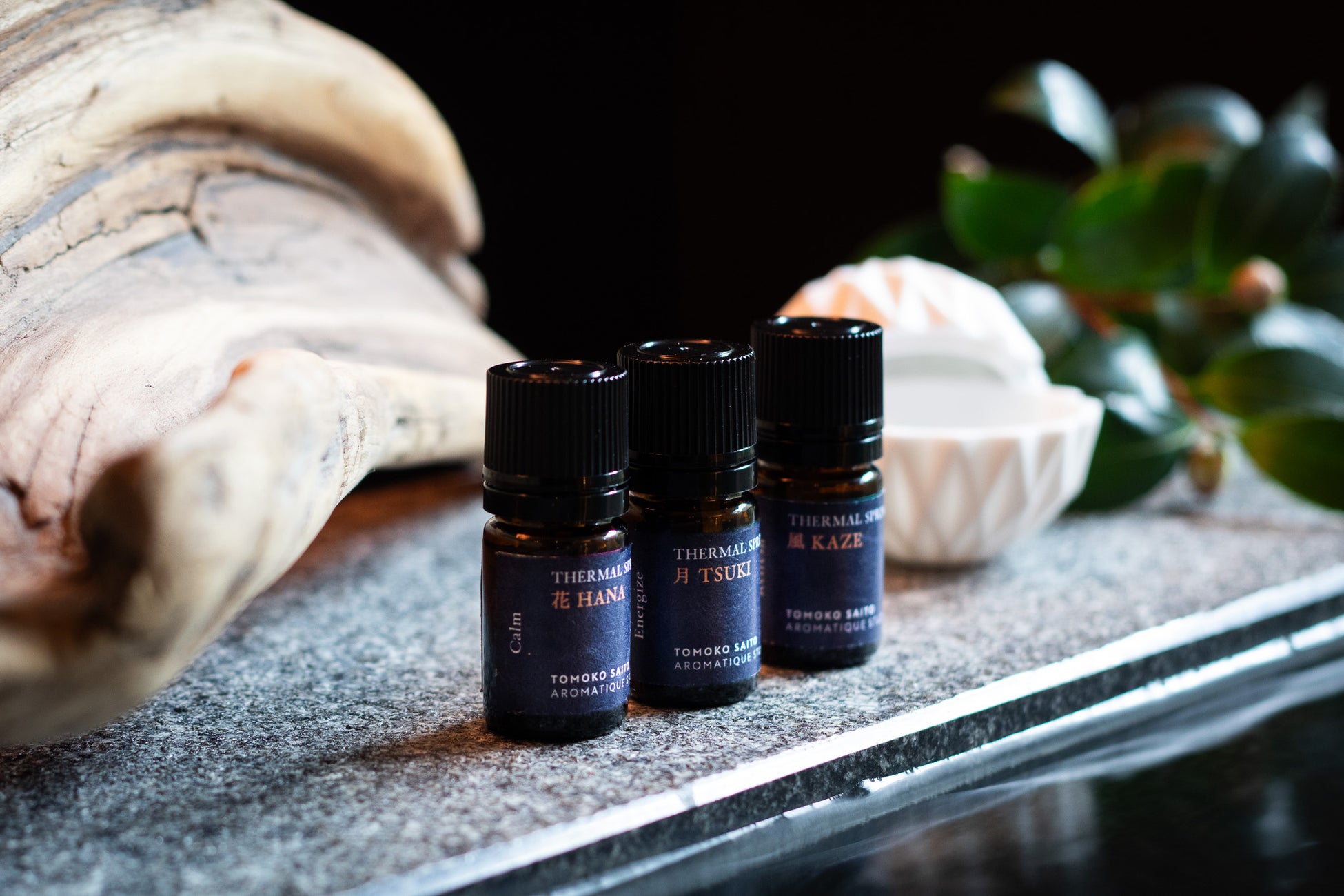 ホテルのオリジナルアロマを手掛けた、アロマ調香デザイナー 齋藤智子氏とともに創り上げた、日本の四季や京都の情景を感じる3つの香り。
