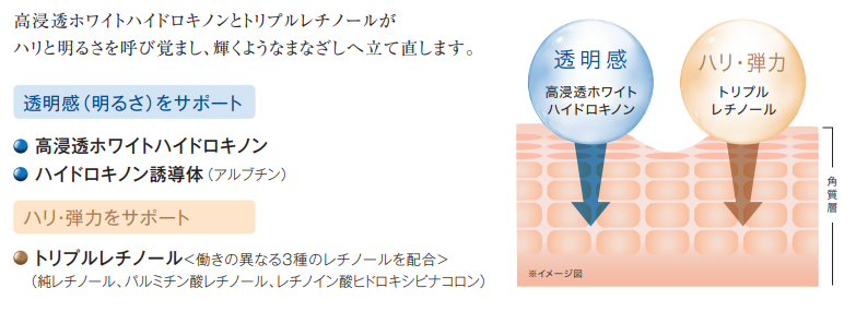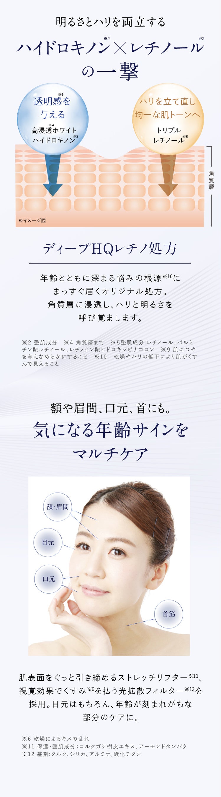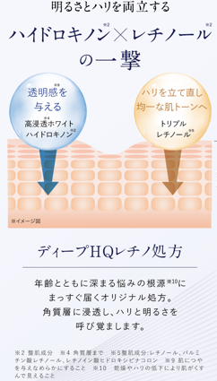 - 明るさとハリを両立する独自の「ディープHQレチノ処方」