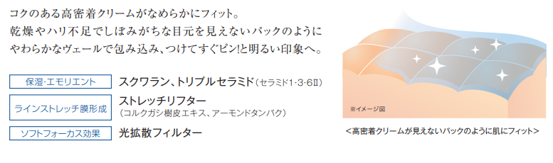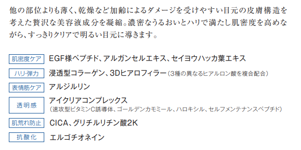 - 目元の皮膚構造を考えた贅沢な美容成分が肌密度をアップ