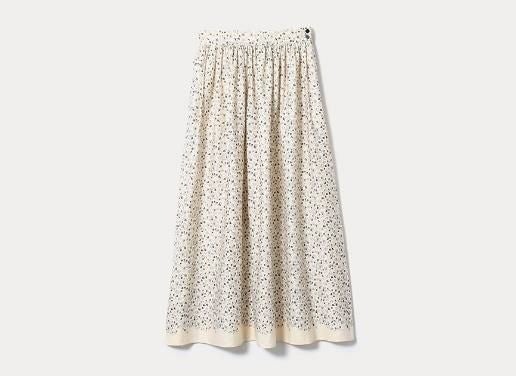 まんまるの実が愛らしい、「山帰来」をモチーフにしたプリントが登場。繊細な柄と、プリスティンでは新鮮なビターブラウンのカラー。甘くなりすぎず、大人の雰囲気が漂います。