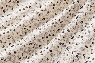 「山帰来」のモチーフをプリントしたのは、上品な光沢感となめらかさが魅力のサテン生地。サテン生地の持つ上品な光沢感はもちろん、オーガニックコットン100%素材ならではのなめらかでとろっとした肌触りも魅力です。
