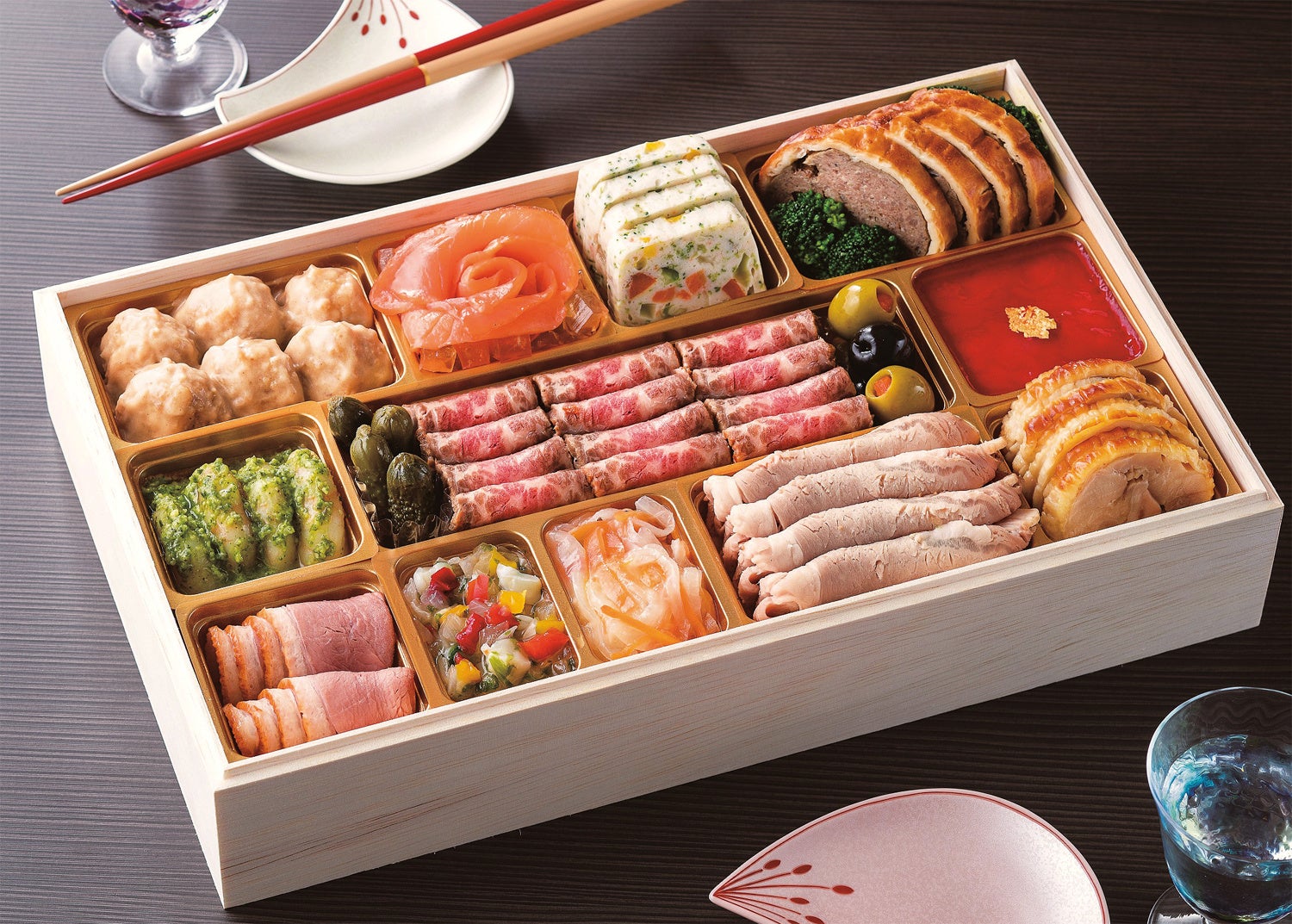シェフ監修のもとメインのローストビーフを中心としたこだわりの洋惣菜をふんだんに盛り込んだ