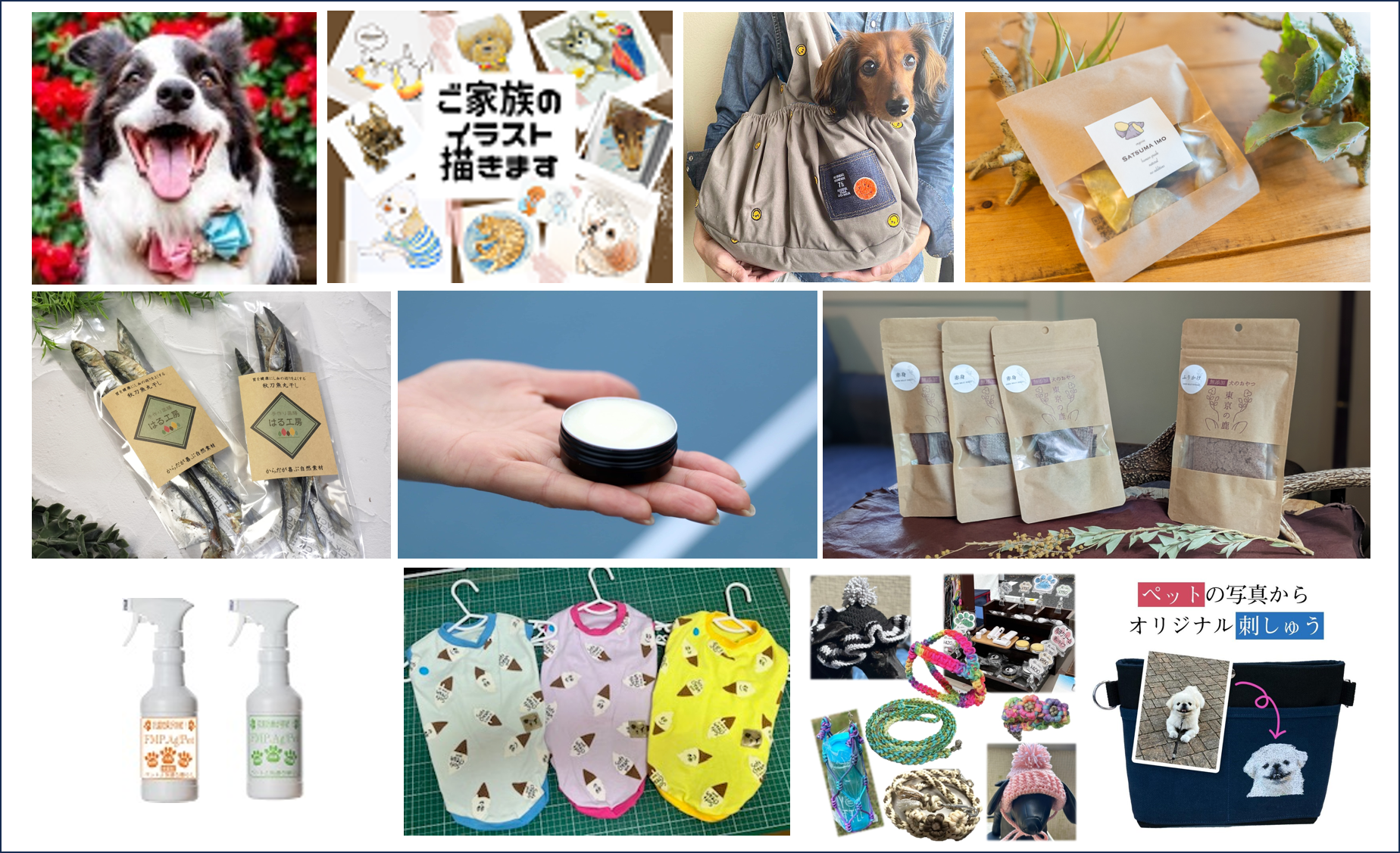 わんちゃん用の洋服やチョーカー、愛犬のお写真で作成できるオリジナルバッグなど、愛犬のための多種多様なグッズが勢揃い。ハンドメイドならではの1点ものの商品もありますので、世界にひとつだけのアイテムを見つけられるかも。