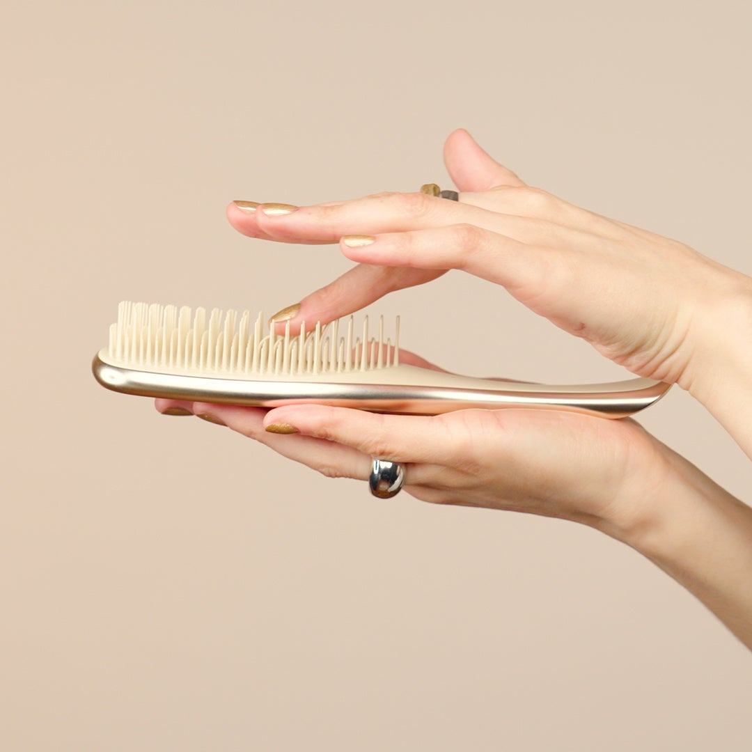 乾いた髪はもちろん、デリケートな濡れ髪もやさしく解きほぐす万能ブラシです。
