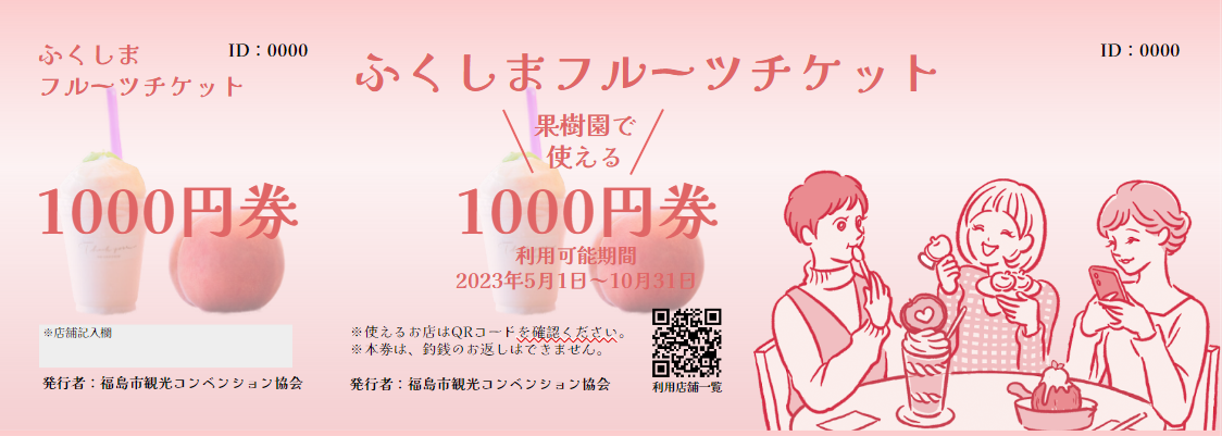 ・ふくしまフルーツチケット1000円分×3枚(釣銭は出ませんのでご注意ください)
