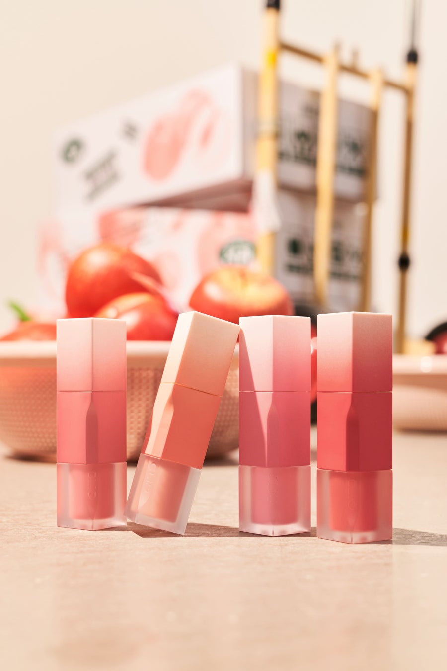 まるでシフォンのようなふわっと軽い付け心地で唇に密着する高発色な「シフォンブラーティント」に4つの新色が登場。「フルーツマーケットエディション」は屋外マーケットに並ぶ新鮮なフルーツをテーマにしたカラーバリエーションで、「19号 特大りんご」「20号 新鮮アプリコット」「21号 甘美いちご」「22号 完熟プラム」 が追加されました。