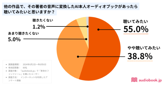 ●93.8%が「他の作品のAI本人オーディオブックも聴きたい」と回答