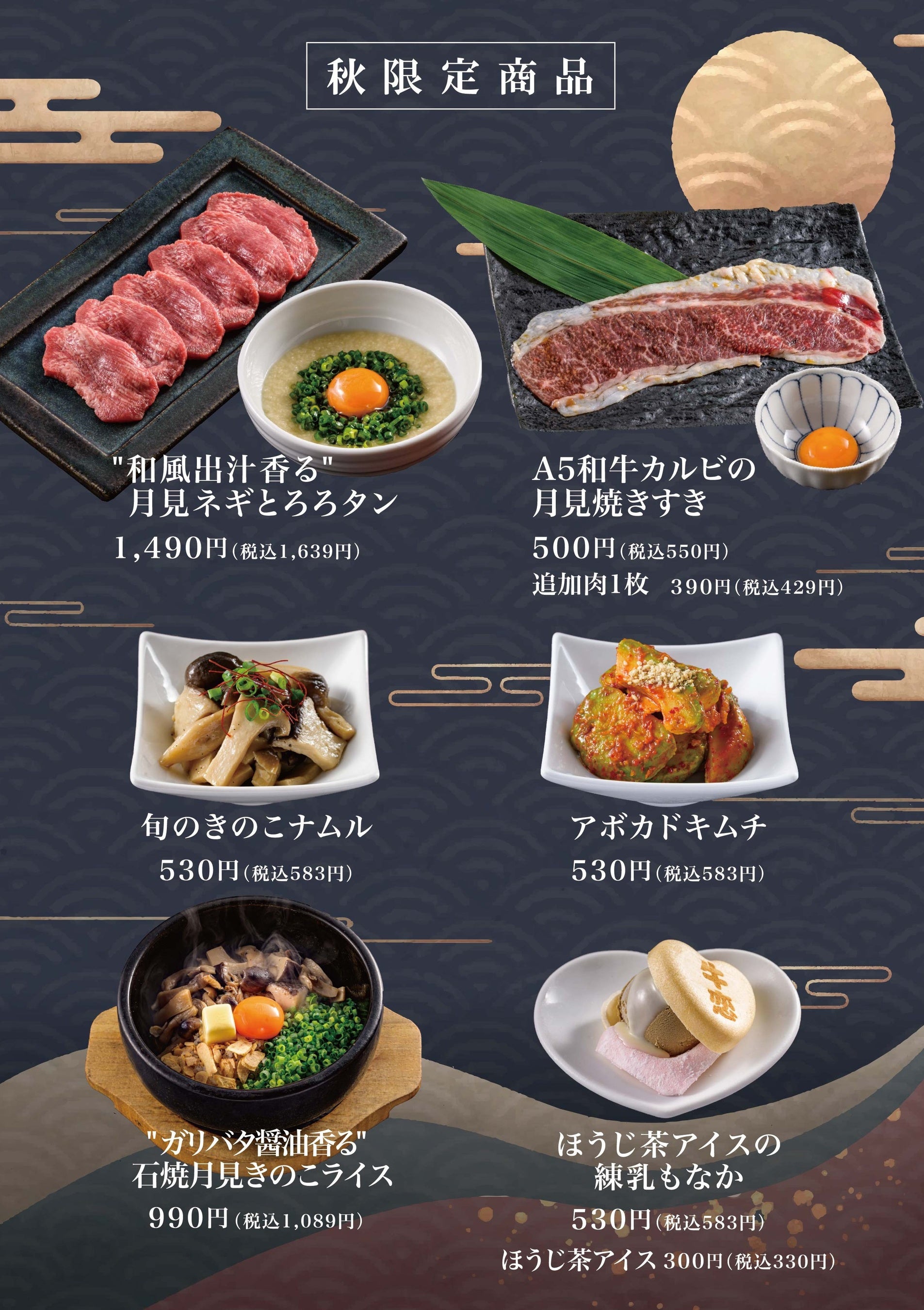GACKT氏、竹内涼真氏など数多くの著名人が通う人気焼肉店「牛恋」は2025年10月1日(水)より「秋限定商品」を提供開始します。