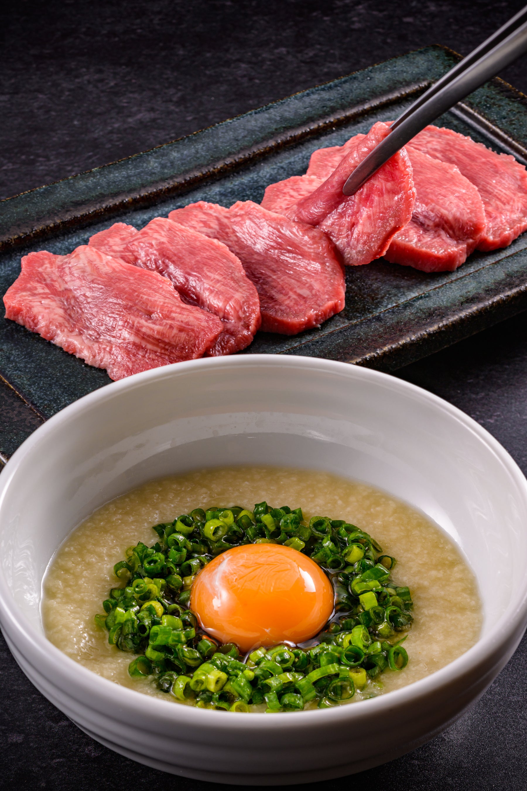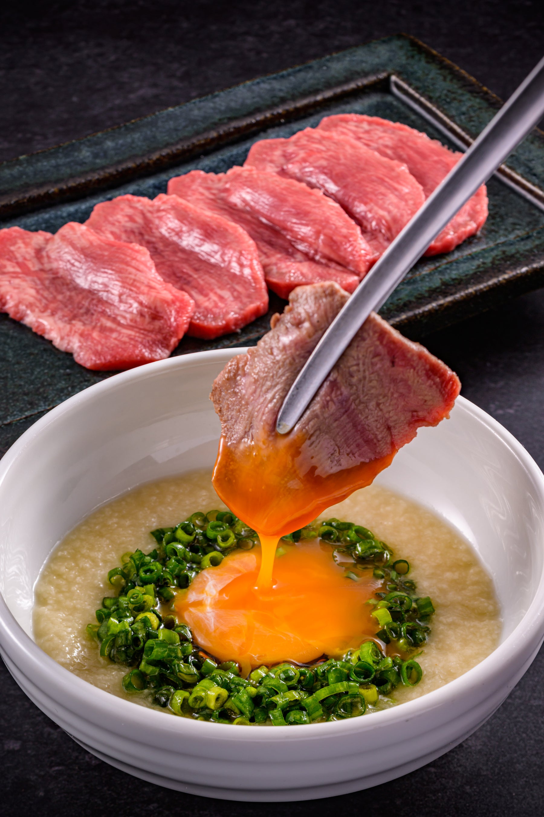 さらに、焼肉店では珍しい、牛タンをとろろに絡めて食べる『“和風出汁香る”月見ネギとろろタン』や赤身の濃厚さや和牛の脂の旨味を堪能でき、ロースターに大きく広がる大判肉『A5和牛カルビの月見焼きすき』合計7品が登場。