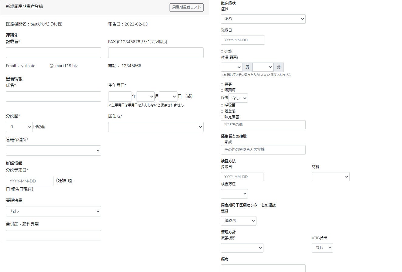 かかりつけ産科医では、自院に通院する妊婦が新型コロナウイルス感染症に感染した場合、「事前共有フォーム」に妊婦情報を入力し登録します。