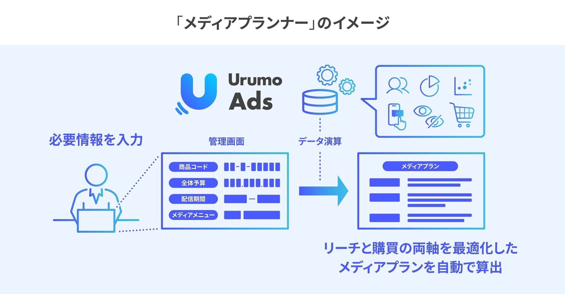 『メディアプランナー』は、「Urumo Ads」でメディアプランニングを行う場合、購買データの活用によってリーチと購買の両軸を最適化する自動プランニングツールです。