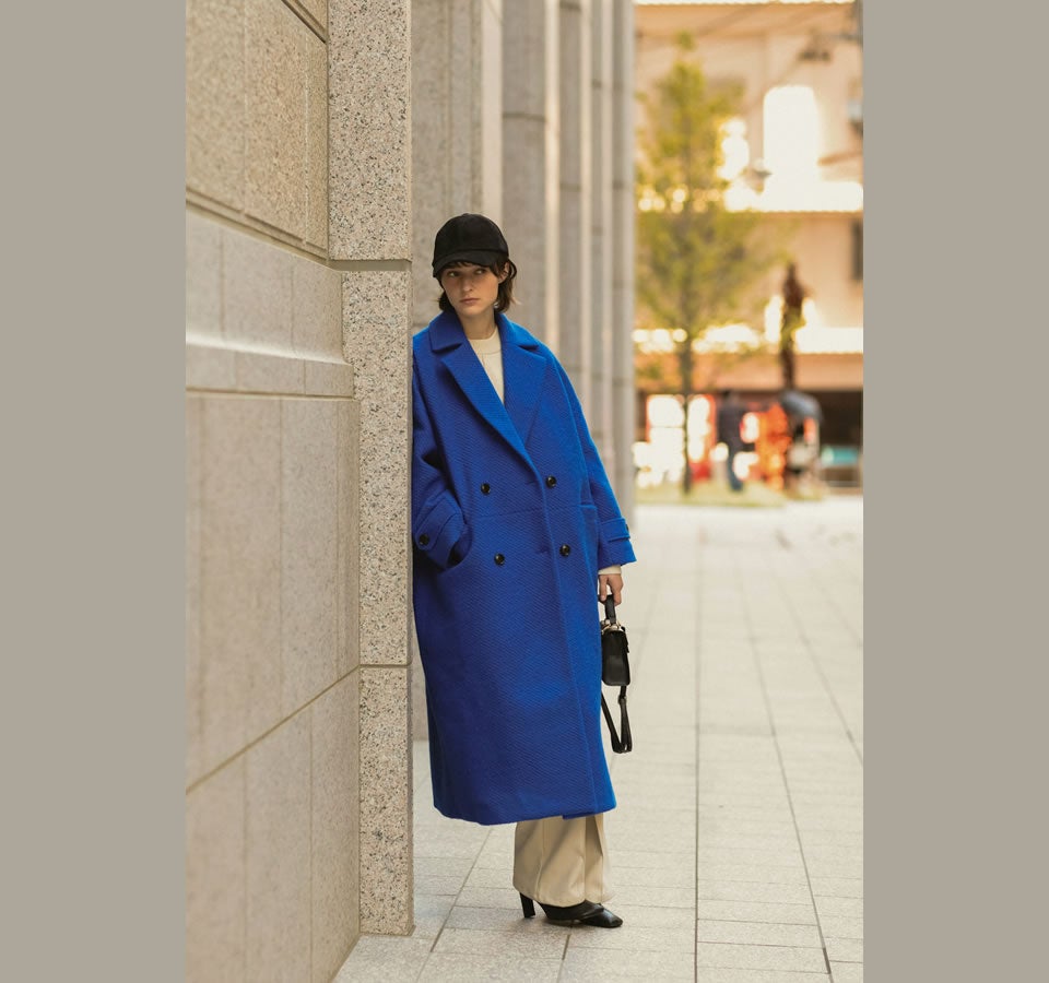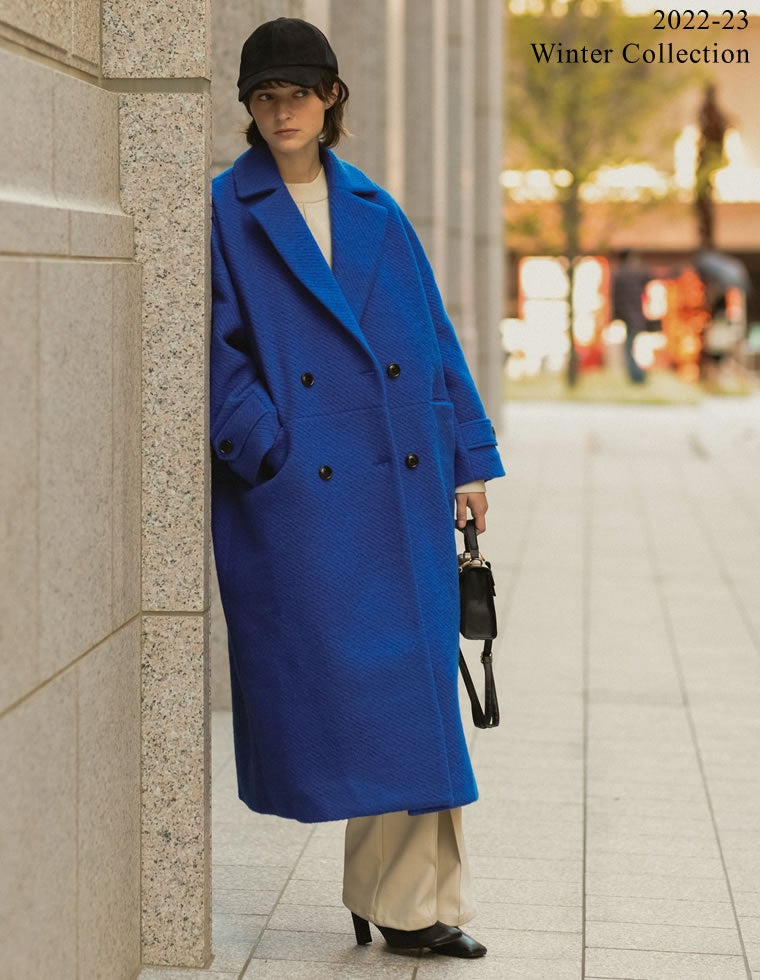 ・厚みのあるフェイクウール生地を使用した、ダブルカラーコート