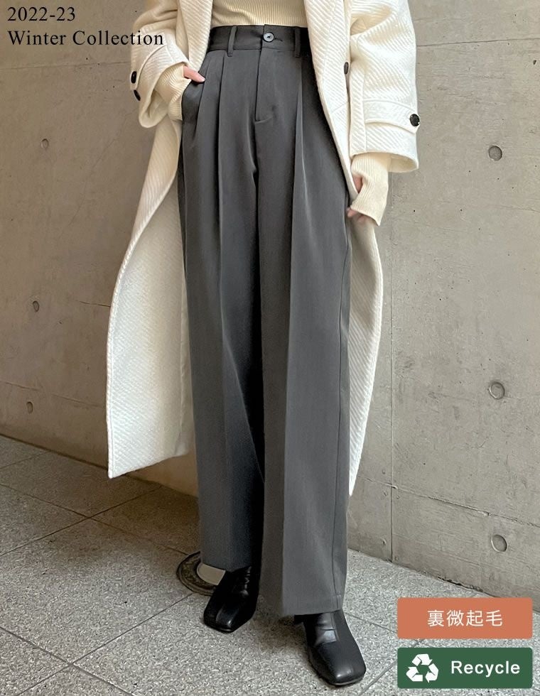 [低身長/高身長/大きいサイズ有][保湿]潤って暖かい裏微起毛リサイクルツータックワイドパンツ