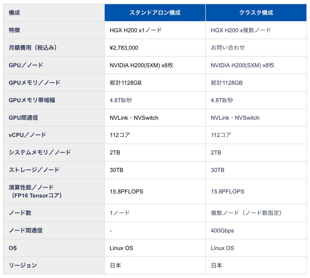 AIスパコンクラウドは、NVIDIA H200を搭載したGPUインスタンスが業界最安級で使えるクラウドサービスです。HGX H200インスタンスは、H100の1.7倍のGPUメモリ「1128GB」を搭載しており、大規模なLLMモデルの処理が可能です。
