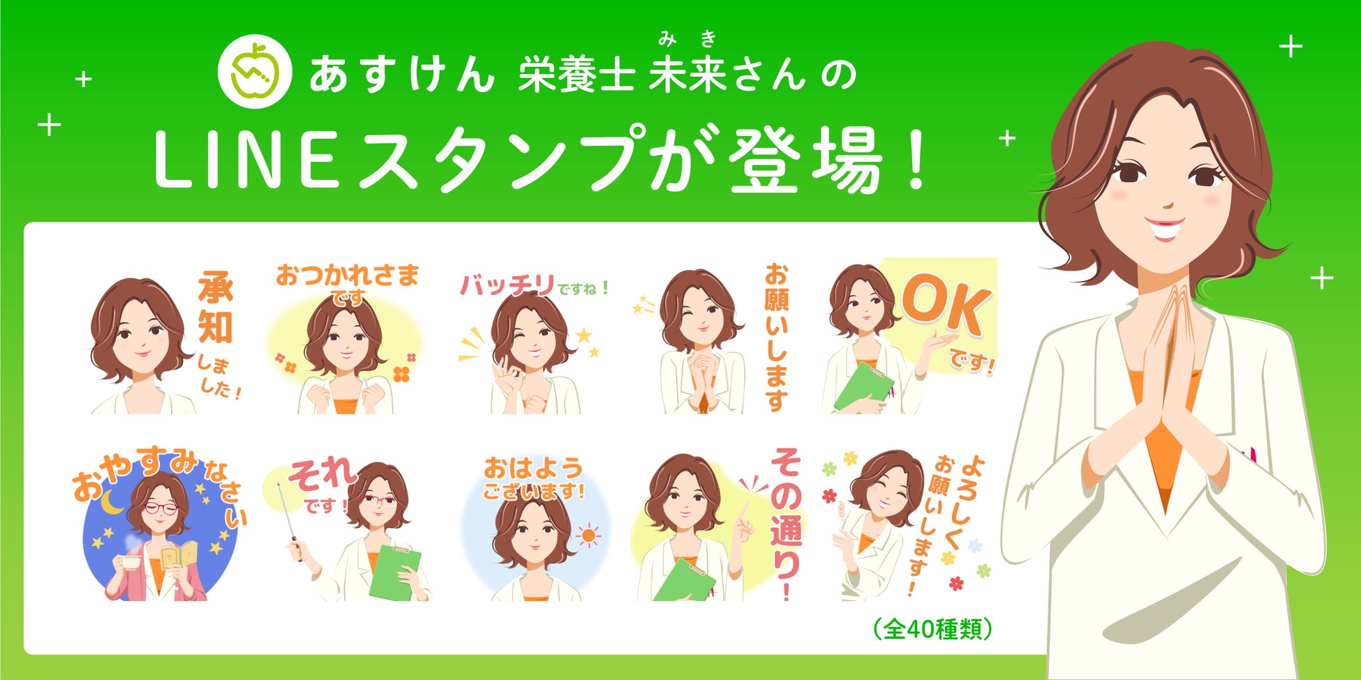 - アプリでは見られない表情も!栄養士キャラクター「未来さん」LINEスタンプ