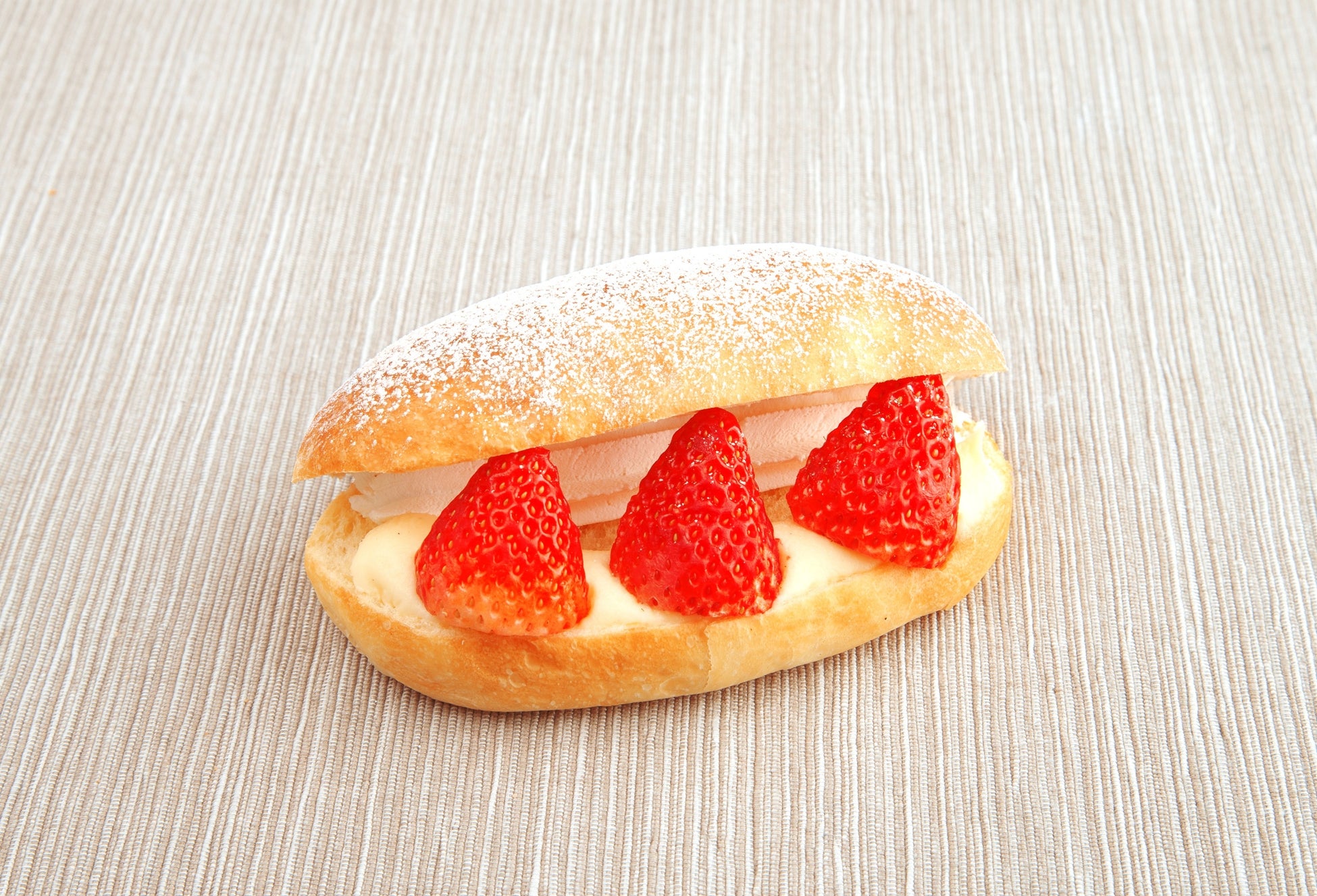 ブリオッシュ生地を使用したふわふわのコッペパンに、今が旬の三重県伊勢市産のいちご「かおり野」をホイップクリームとカスタードクリームとサンドしたこの時期限定のスイーツコッペ。