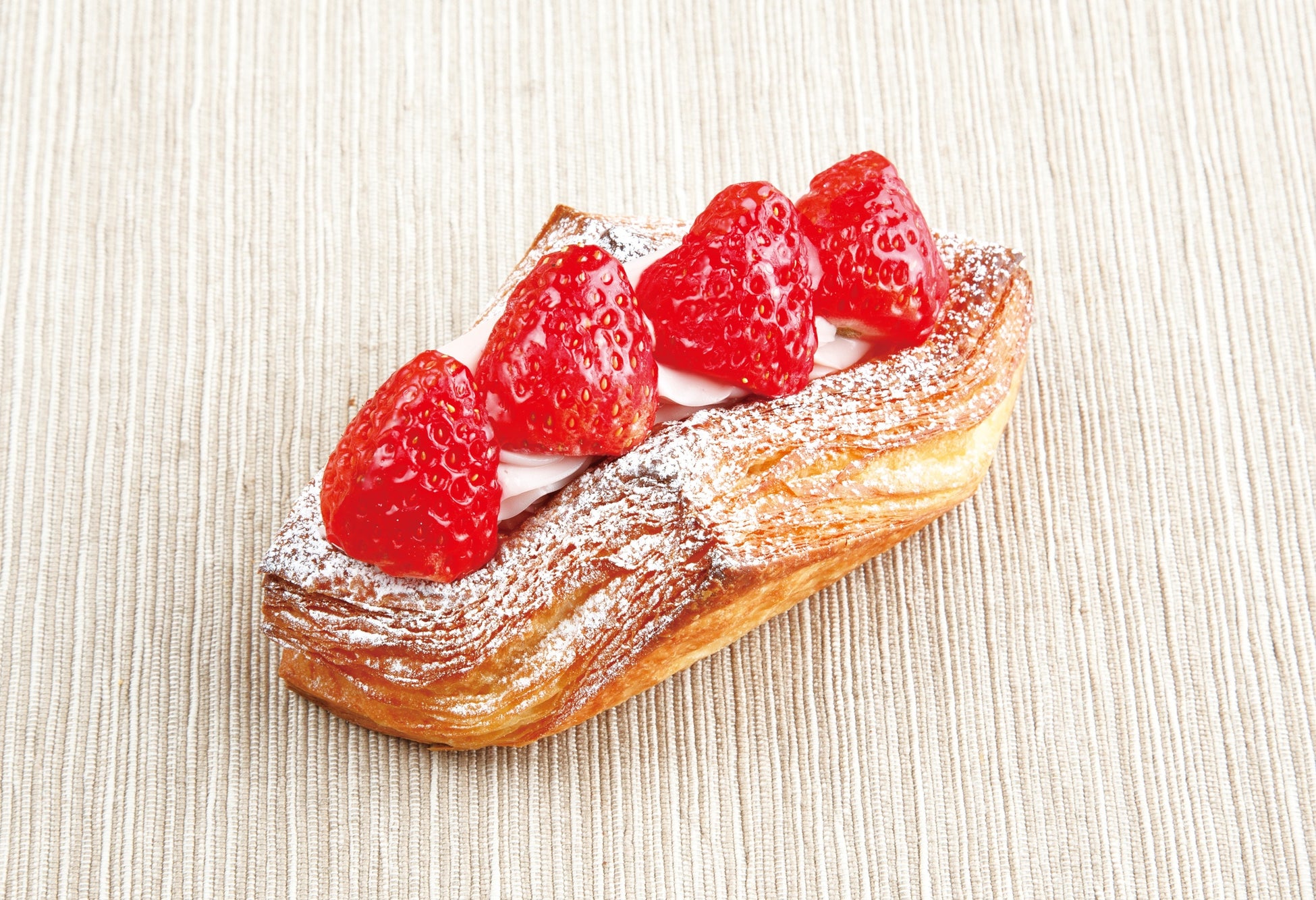 サクサクのデニッシュにいちごミルククリームと旬の三重県伊勢市産のいちご「かおり野」をトッピング。見た目も可愛いいちごづくしのデニッシュ。