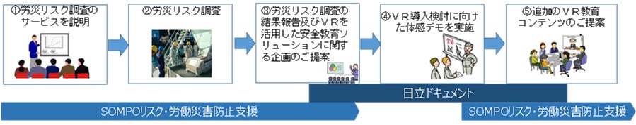 SOMPOリスクが現地の労働災害リスク調査を実施し、その結果をふまえてお客さまの実態に即した内容で日立ドキュメントが提供しているVRを活用した安全教育ソリューションをご提案します。