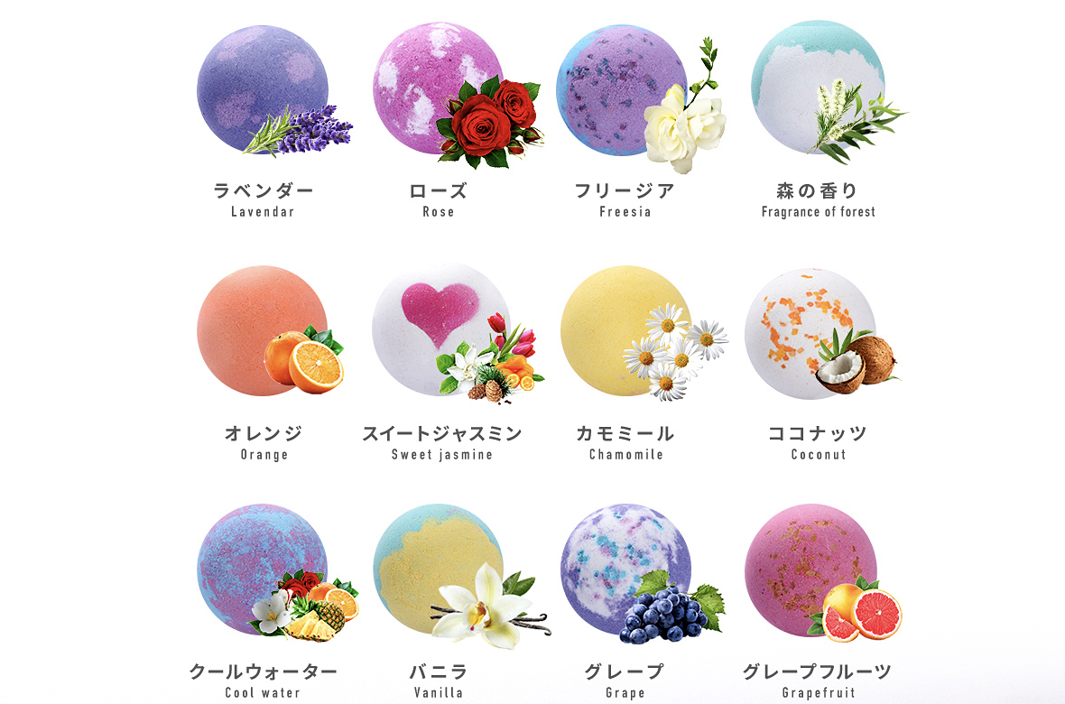 ・人気の高い!個性豊かな12種類のフレイバーのバスボムを厳選