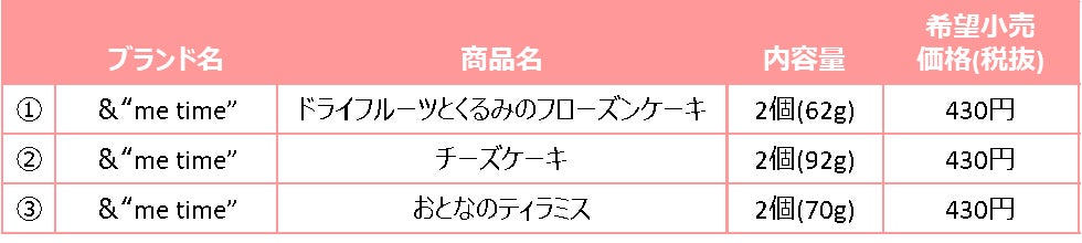 三菱食品株式会社(東京都文京区)は、スイーツブランド『&“me time”(アンドミータイム) フローズンデザート』新商品3品を9月1日(金)よりスーパーマーケットやドラッグストアをはじめとした全国に発売します。