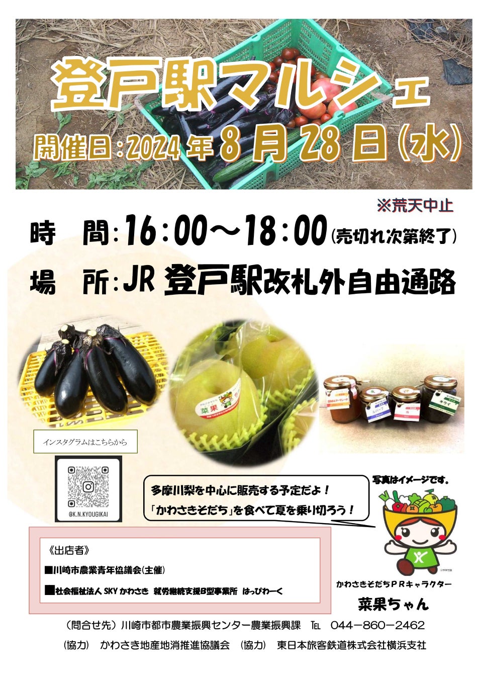 南武線沿線の皆さまに地域の農産物に触れる機会を提供し、地域の活性化や地産地消を推進することを目的として、平成26年度から開催している直売イベントです。