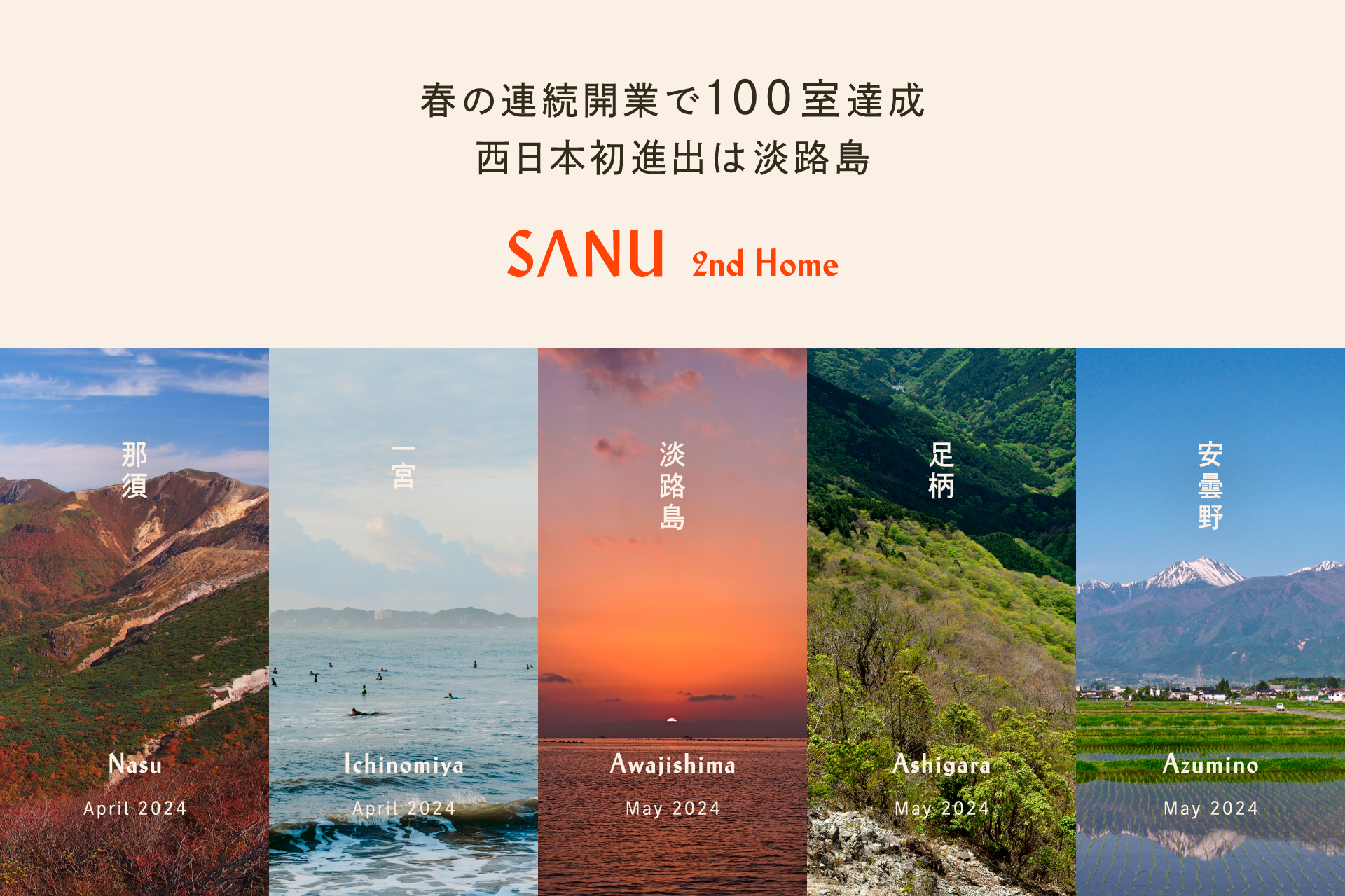 SANU 2nd Home 春の5拠点連続開業で100室達成!西日本初進出は淡路島