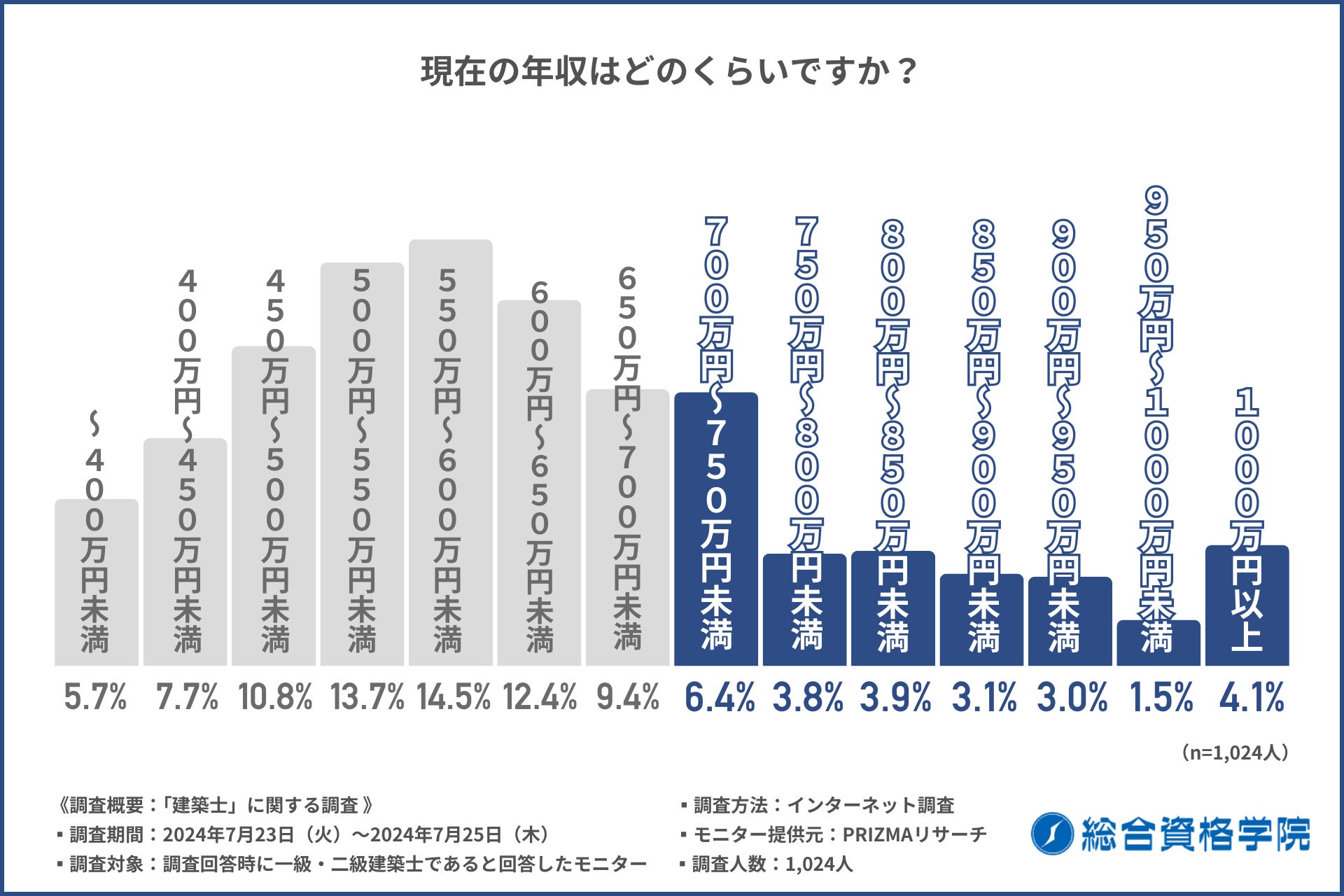 【建築士の資格取得や年収に関する実態調査】1,024人がアンケートに回答!建築士の4人に1人が年収700万円以上、約7割が現在の年収に満足していることが明らかに!