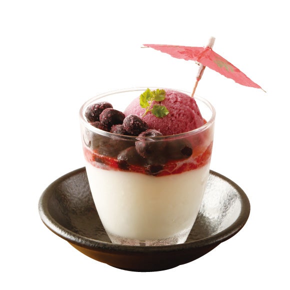 杏仁豆冨にグレープのシャリシャリシャーベットとブルーベリーをトッピング。
