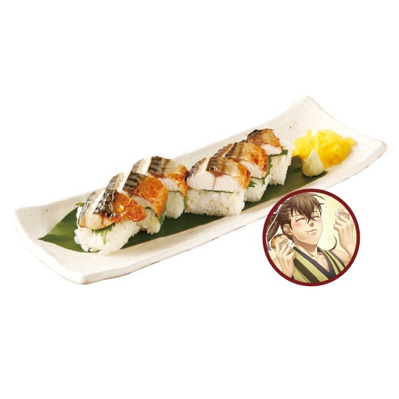昆布だしに漬けた鯖を香ばしく焼き上げ、大葉のさわやかな風味と合わせた押し寿司です。
