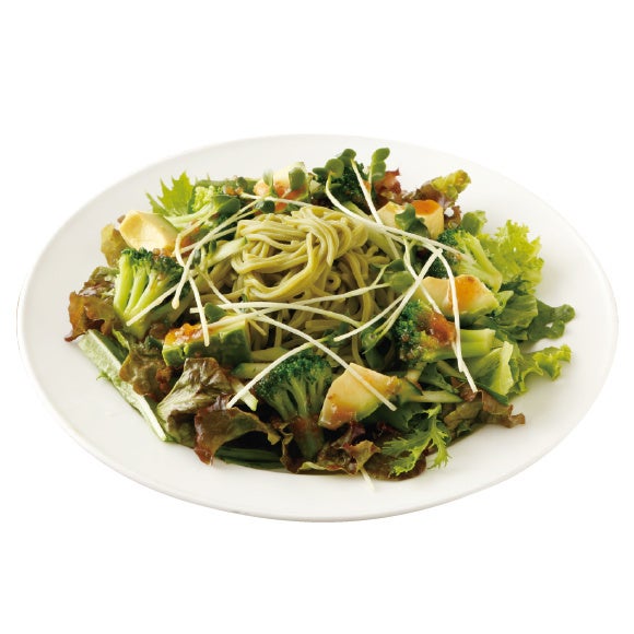 風味豊かな茶そばが入ったサラダです。玉ねぎドレッシングがよく合います。