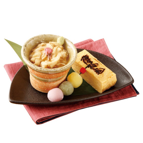 薄桜鬼ロゴの焼印が入った玉子焼きと3色大福付き。