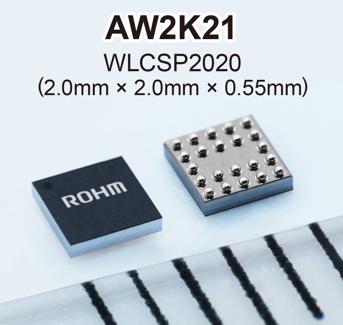 ローム株式会社(本社:京都市)は、2.0mm×2.0mmのパッケージサイズで業界トップとなるオン抵抗(*1) 2.0mΩ(Typ.)のNch 30V耐圧コモン・ソース構成のMOSFET(*2)「AW2K21」を開発しました。