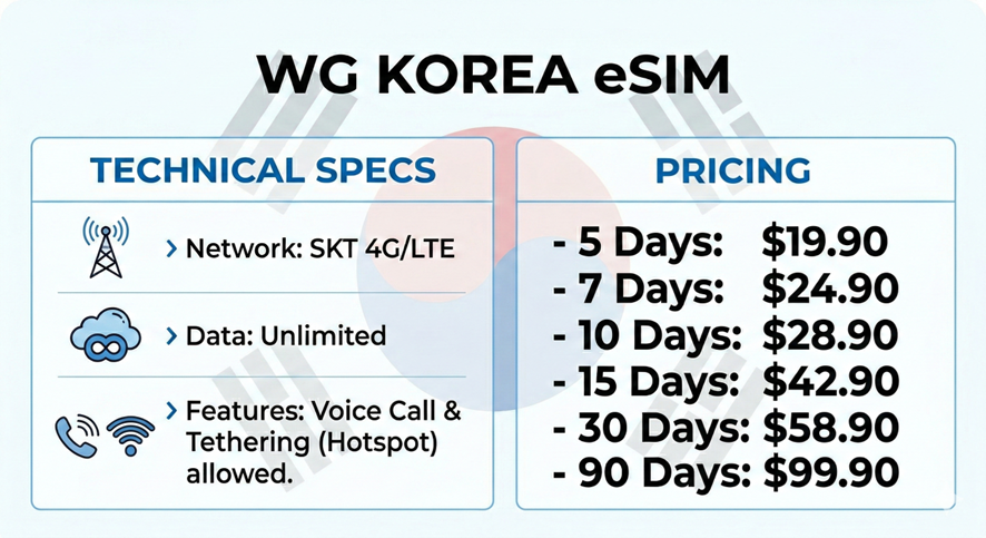 Wi-Fi・グローバルeSIM コネクティビティ事業を展開する株式会社ワイヤレスゲート(本社:東京都品川区 代表取締役CEO:成田 徹、以下、当社)は、韓国へ渡航する方々に向け、利便性と実用性を兼ね備えたeSIM「WG KOREA eSIM」を2026年3月4日より販売開始したことをお知らせします。