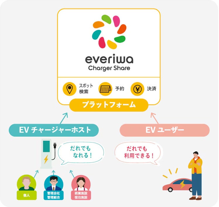 EV充電器を手軽に課金シェアできるサービス「everiwa」対応機種に、新電元6kW普通充電器が新たに登場。スマホでQRコード読むだけで利用可能。法人や個人宅の充電器を、自由な料金設定でシェア。