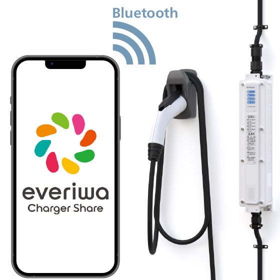 「everiwa Charger Share」は、新電元「見せない普通充電器」として初のスマートフォン・Bluetooth通信に対応したユーザーサービスとなります。