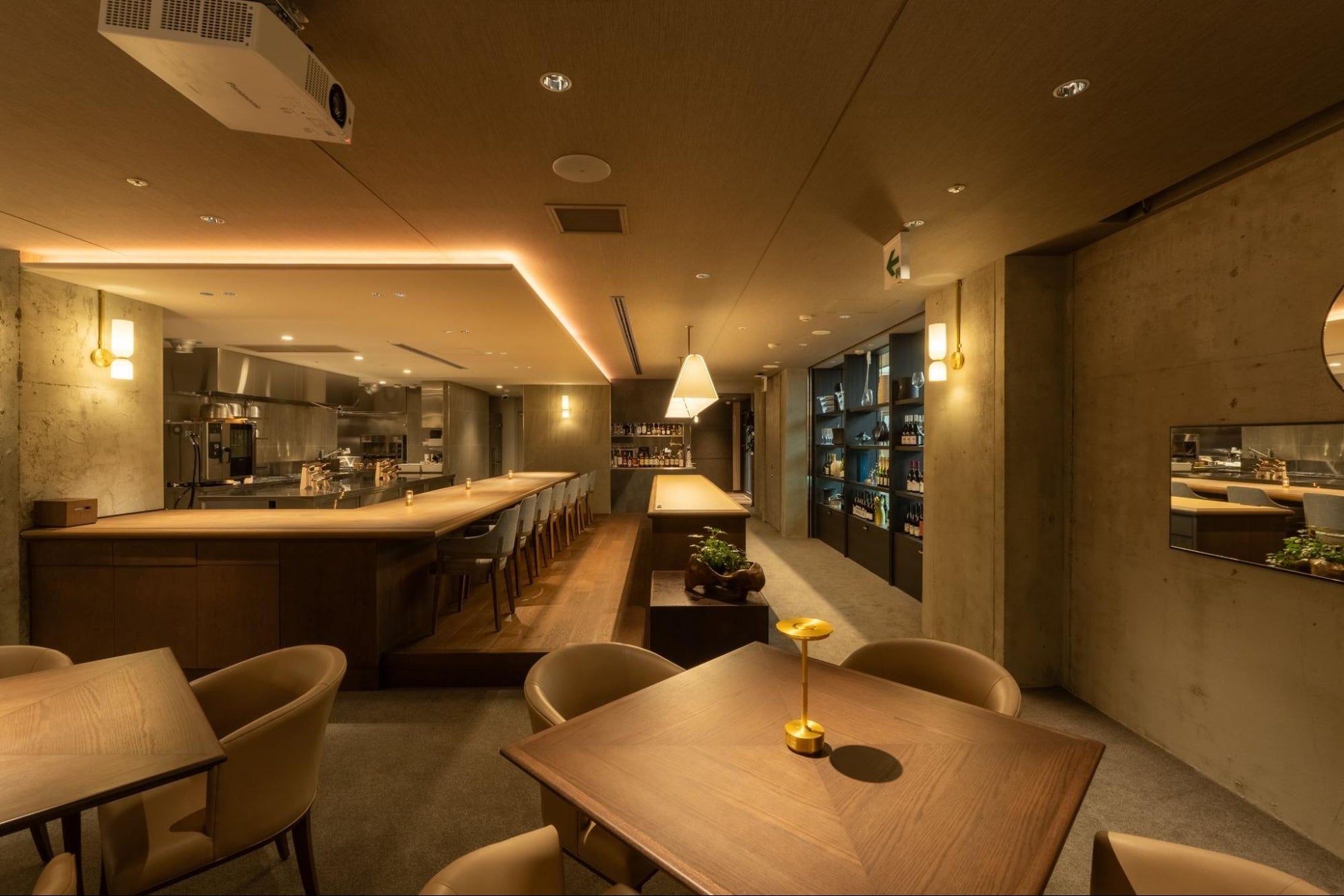 店内はこだわりのインテリアに包まれ、上質でありながら、木のぬくもりやあたたかさを感じられる、落ち着きのある空間を演出しております。これまでは完全予約制でコース料理のみで営業しておりましたが、このアラカルトメニューのスタートにより、お気軽にお立ち寄りいただけるようにいたしました。
