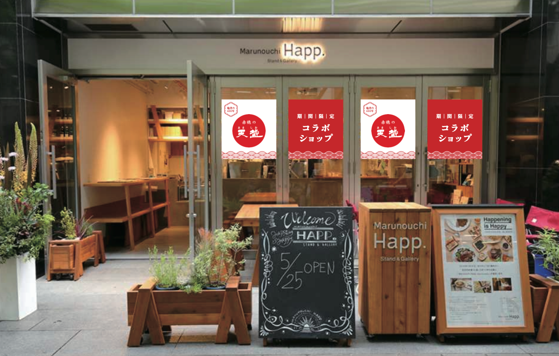同敷地内のHapp. STOREの広告的位置づけとしてコラボショップ仕様に装飾、広告店舗(2DAY)として活用